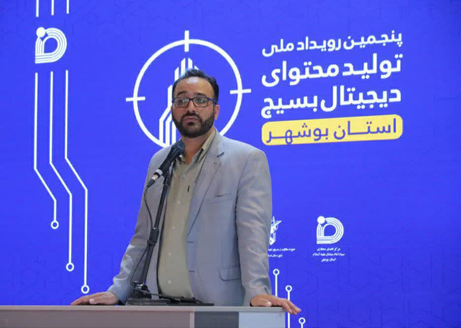 به گزارش پژواک بوشهر؛ مهراب کیانی رئیس مرکز فضای مجازی بسیج استان بوشهر در پنجمین رویداد ملی تولید محتوای دیجیتال بسیج استان بوشهر که در عسلویه برگزار شد، اظهار داشت: رویداد ملی تولید محتوای دیجیتال بسیج بهدلیل حجم فعالیتهای خوب منطقه در قطب انرژی ایران برگزار شده است تا تصاویر حقیقی از پیشرفتهای امیدآفرینانه قطب انرژی با هنر افراد توانمند به ظهور برسد.